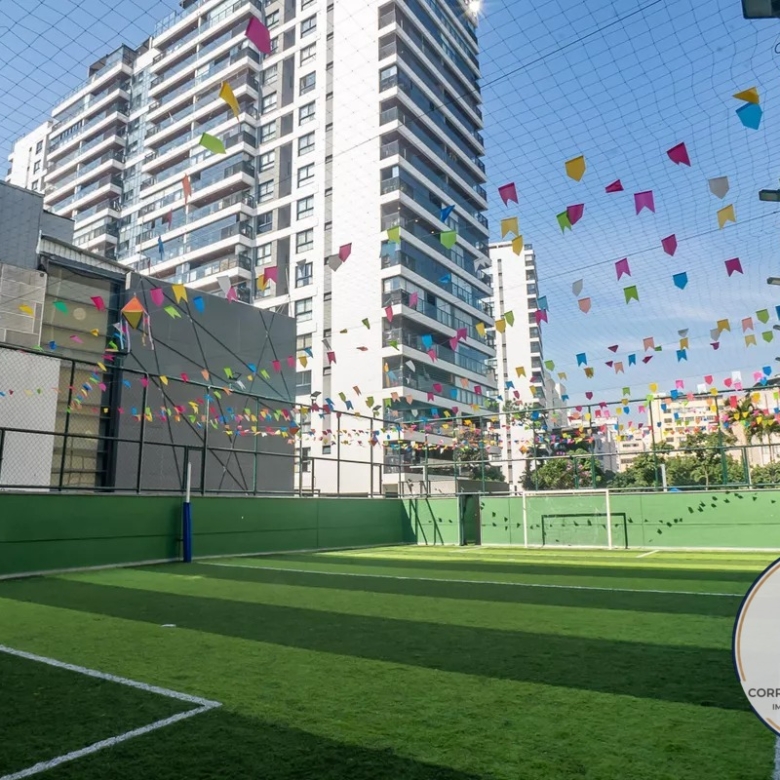 Playground, Piscina, Churrasqueira, Quadra esportiva, Academia, Salão de festas, Sauna, Brinquedoteca, Corrimão, Piso tátil, Rampas de acesso, Salão de jogos, Vaga de garagem acessível, Área verde, Elevador, Portaria 24h